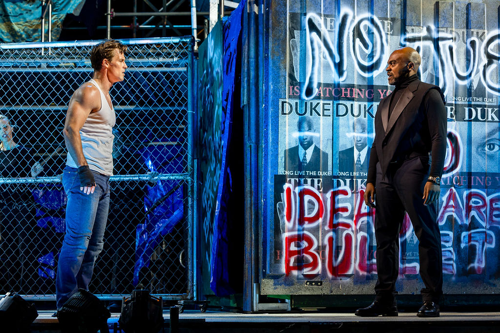The costume design didn’t quite land, blending more ornate pieces with modern casual wear in a way that felt more jarring than intentional: from the clash of patterns to the choice of jeans I couldn’t place what time period we were going for. The chain railings on the stair-ladders also proved distracting, their metallic jangle bleeding into the sound mix. And while Shakespeare’s comedies are rarely short, at two hours and almost forty minutes (with intermission), this one could benefit from a trim to keep the pacing as brisk as its strongest scenes.