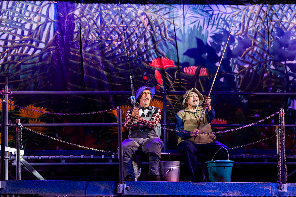 David Reiffel’s music composition and direction add richness and momentum to the production, making the play feel alive from start to finish. Aubrey Dube’s sound design layers in lovely, specific touches, like the plunk of a fishing line hitting water, that make the setting vivid. Even the scene transitions feel purposeful thanks to thoughtful audio cues. And the fight choreography by Ryan Winkles? The opening brawl is an instant hook, setting the tone for a night of dynamic, physical storytelling.
