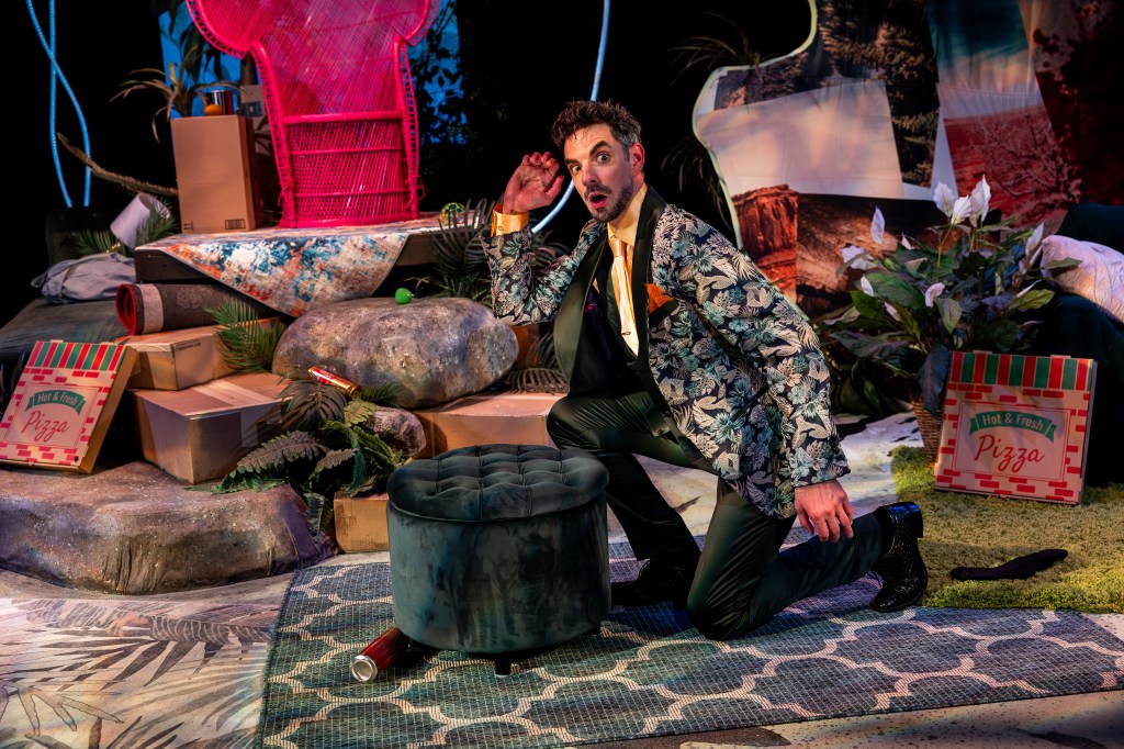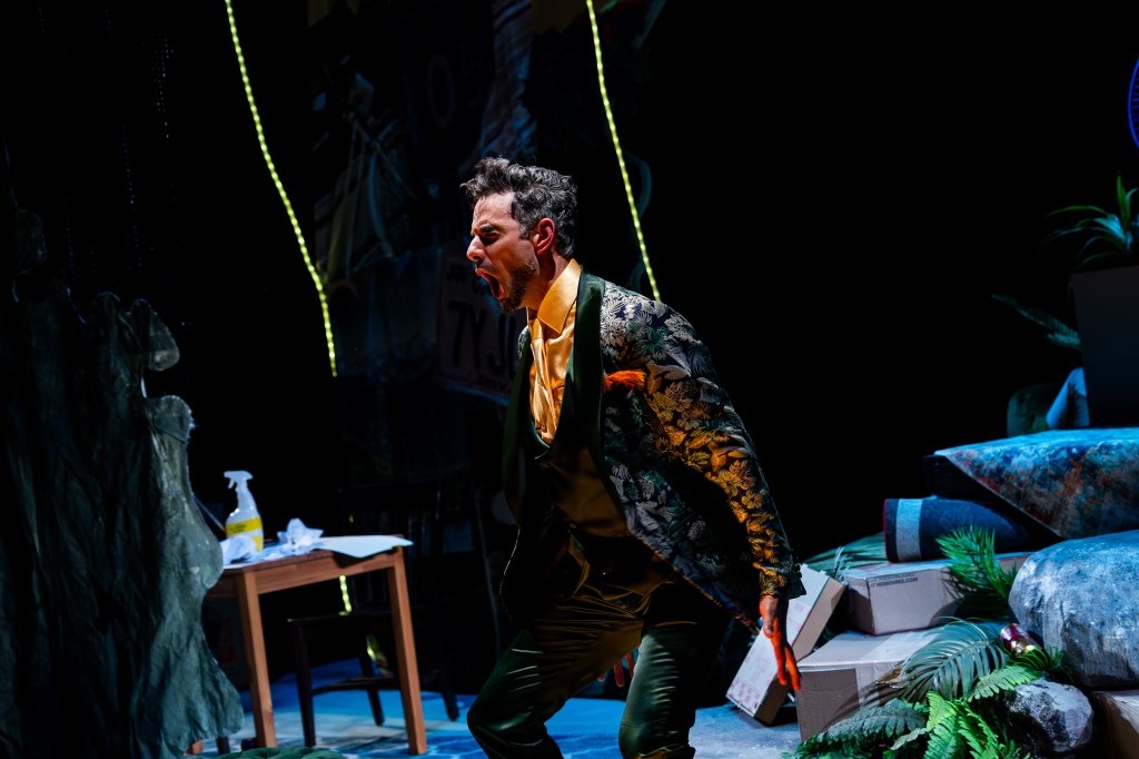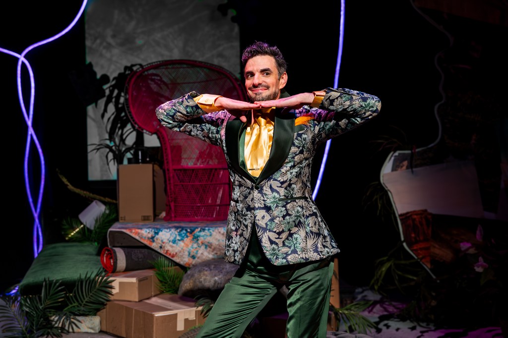 When director Weylin Symes first read the play over two years ago, he said he immediately pictured Paul in the role: “The physicality that Featherbaby demands is perfect for Paul’s skill set. He has this unmatched ability to find a very specific physicality that’s funny but also emotionally real. And because the character serves as our emcee, Paul’s gift for connecting directly with an audience made him the only person I could imagine leading them through this wild story.” Paul laughed at the memory: “I know Weylin, and we’ve worked together a bunch of times. We did Legend of Sleepy Hollow, which was just me alone for 90 minutes, so I think he knew I could take on something unusual. He also knows I’m a very physical actor and I like to play with my voice a lot, which is exactly what parrots do. It was flattering that he thought of me immediately. Still, when I first read the script, I thought, ‘Oh, this isn’t an easy one to imagine yourself in.’ A lot is left to the imagination. But that’s where I lean in — making fun choices on stage and seeing how far they can go.”