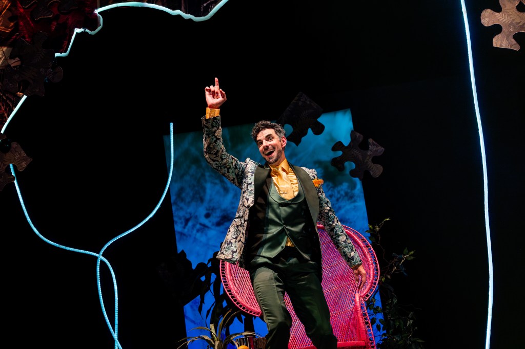 I get a kick out of it. It doesn’t make me nervous. If an audience member says something crazy, that’s great: I will go with it. I make sure not to go too long with people; keep it quick in and out. But I will make a whole other show with just one person if they let me. I’ve had so many opportunities for audience interaction, Sleepy Hollow, Drowsy Chaperone, so I enjoy a variety. I like connecting with the audience. I can usually tell pretty immediately if someone wants to play or not. When they do enjoy it, they love it whether they’re involved or watching. It means the show will be different from night to night, and I like to react to that.