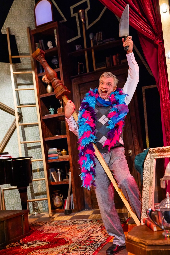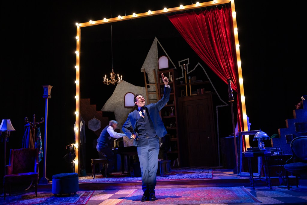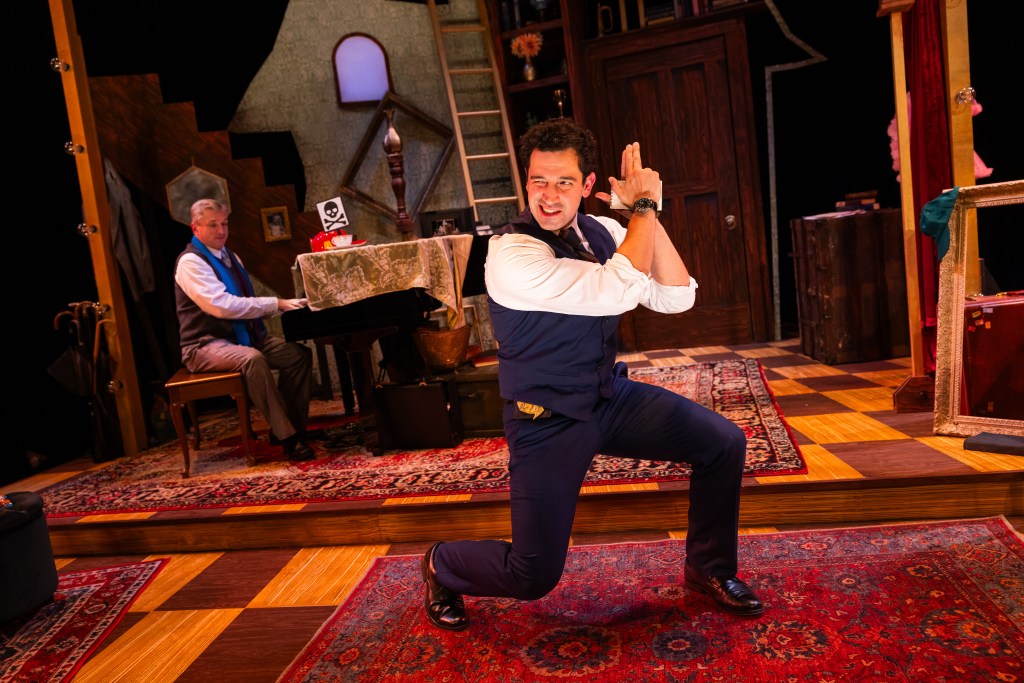 Will McGarrahan was the second half of this dynamic duo, playing every suspect with sharp comedic timing and physical precision. One moment he’s an overdramatic ballerina, the next he’s a precocious kid, then suddenly he’s back at the piano, underscoring it all without missing a beat. I especially enjoyed his portrayals of Timmy, Yonkers, Skid, and Barrette Lewis. Taking on that many characters is no small feat, yet Will made it look effortless. While a few of the female roles blurred together slightly, he still gave each one enough quirks and mannerisms to keep them distinct. His performances of “Perfectly Lovely Surprise” and “So What If I Did?” were major highlights. There’s a real generosity to his performance too; you can sense how much he’s playing with Jared rather than just alongside him. That energy and connection is what makes the show sing.