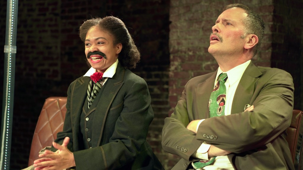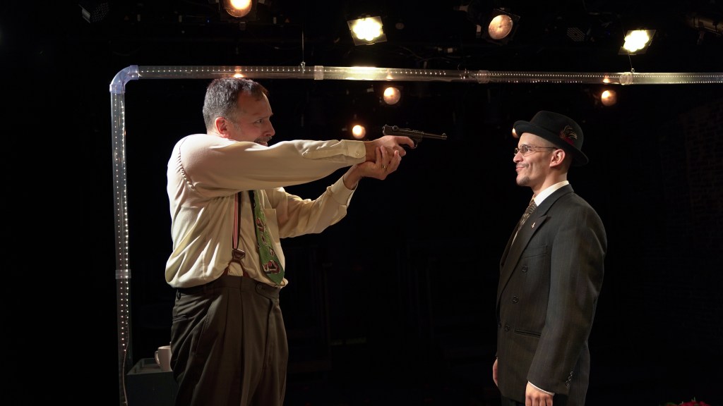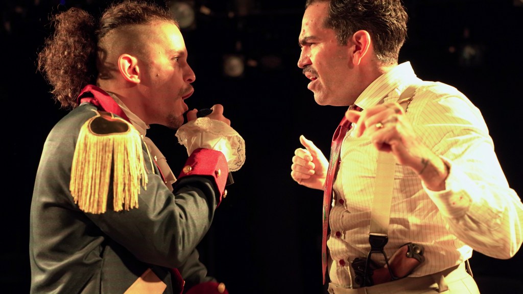 Ashley L. Aldarondo and Alexander Crespo Rosaio II bounce between characters in a way that feels like a full cast all on its own. Ashley’s brown-faced Maria from West Side Story is a wild standout and somehow sits right next to her sharp, fast-talking turn as an FBI agent. Both hit in totally different ways and both work. Alexander scores big laughs as Christopher Columbus and Alexander Hamilton, leaning all the way into the absurd charm of both figures. And Armando Rivera steps into the action as a writer from the future, switching from small comedy bits that had the crowd chuckling to moments of quiet sincerity. It is clear he knows exactly how to guide the work from both sides of the room.